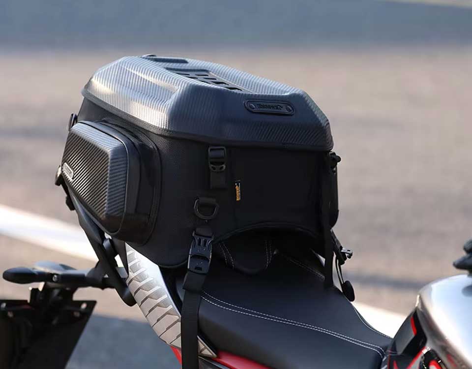 Rhinowalk Genişleyebilir Motosiklet Kuyruk Çantası, aerodinamik yapısıyla klasik plastik ya da metal arka çantaların aksine, motosikletinizin arkasında salınımların oluşmasını engelliyor. Yüksek hızlarda bile motosikletinizin gidişi her zaman stabil!