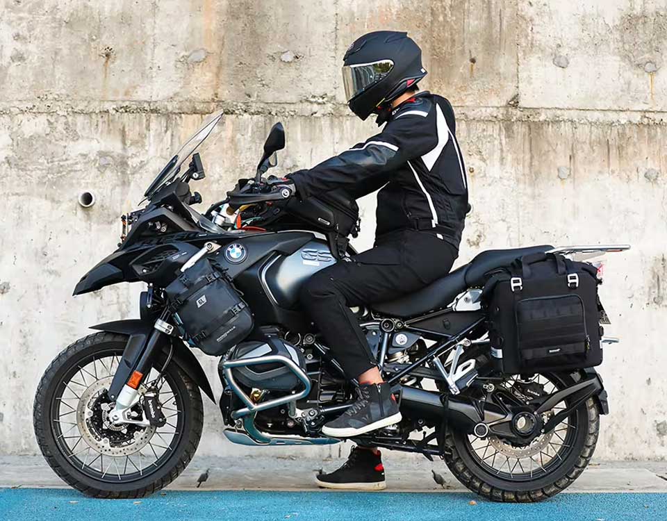Suya, sürtünmelere ve güneş ışınlarına karşı son derece dayanıklı olan 1200D yoğun dokumalı kumaşı sayesinde Rhinowalk 25L Yan Çanta Seti, en zorlu motosiklet maceralarında bile eşyalarınızı güvenle taşımanızı sağlayacak.