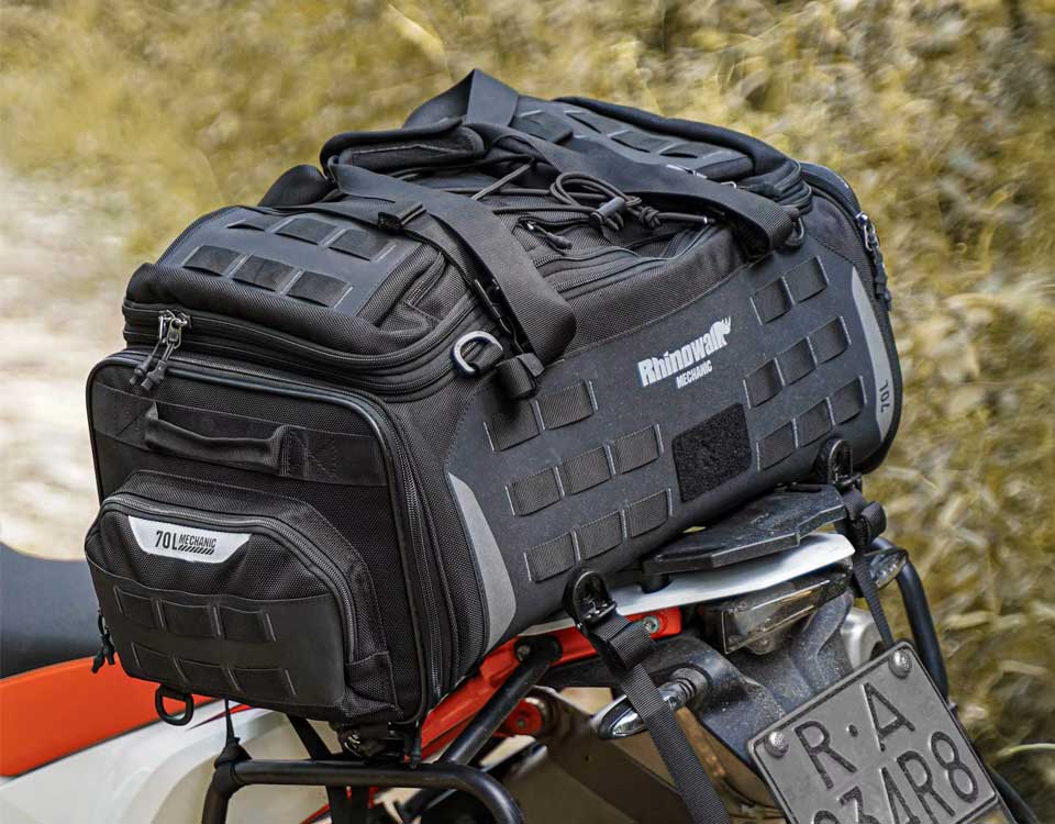 Yolculuk sonunda yolun o tüm yorgunluğyla motorun üstündeki çantların nasıl ağırlaştığını biliyoruz. Rhinowalk Mechanic arka çanta, paket içinden çıkan taşıma bağlantılarıyla el çantası, omuz çantası ya da sırt çantası olarak kullanılabiliyor. Bir elinizde çanta, bir elinizde kaskınızla yürüme derdine son!
