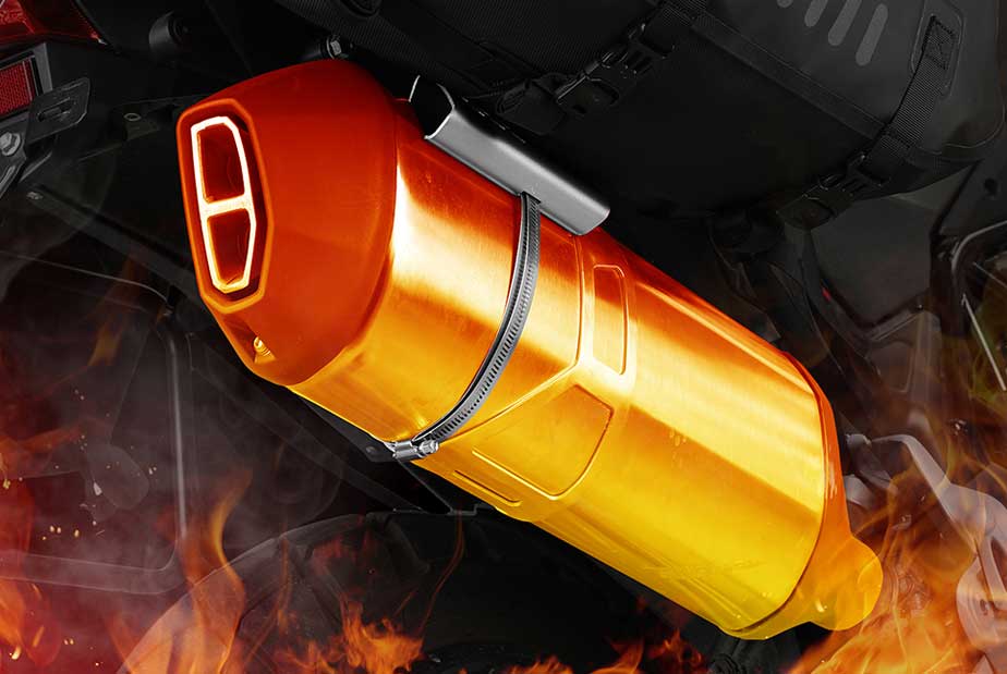 Rhinowalk Motosiklet Egzoz Isı kalkanı ile egzozu yüksek konumda olan motosikletinizde Rhinowalk Rackless Yan Çanta serisi (MT1428 – MT1418 – MT1448) ürünlerini güvenle kullanabilirsiniz.